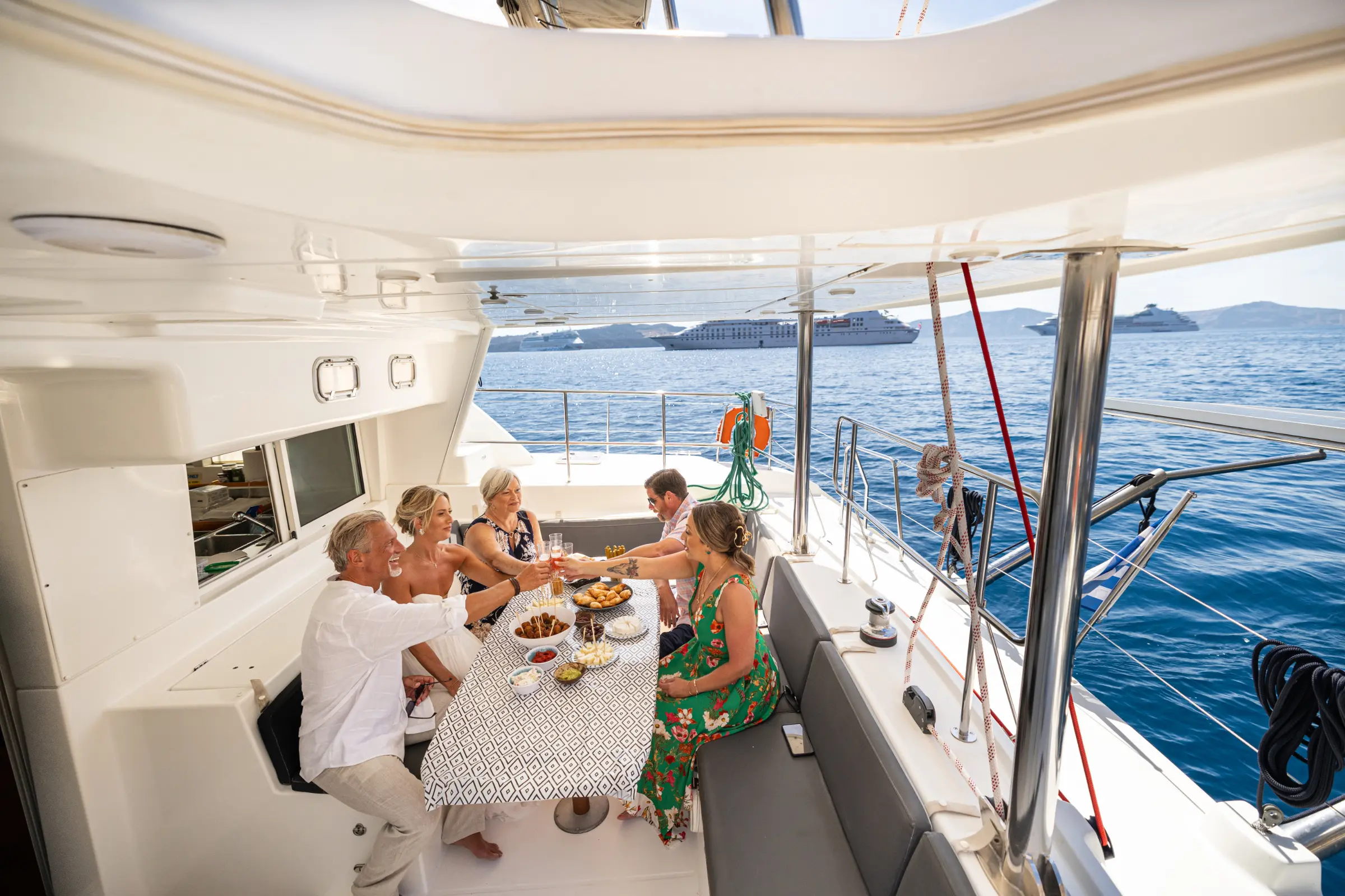 Hire your private catamaran sailing yacht for your bachelor party in Santorini and go to a secluded place to party freely and with privacy! Bachelor & Bachelorette special requests are welcomed and we’re happy to accommodate them for you!