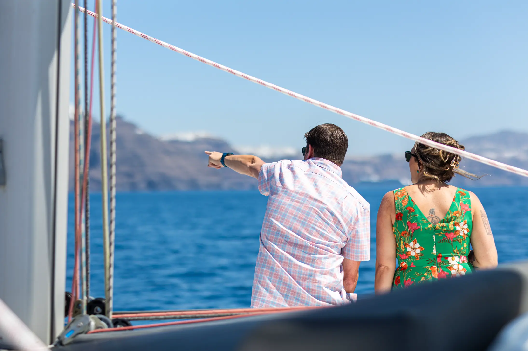 Experience the ultimate personalized sailing cruise on the waters of Santorini, Let our crew offer a combination of luxury, romantic atmosphere and a great sense of exploration while on the 5 hour sailing cruise on the highlights of Santorini.