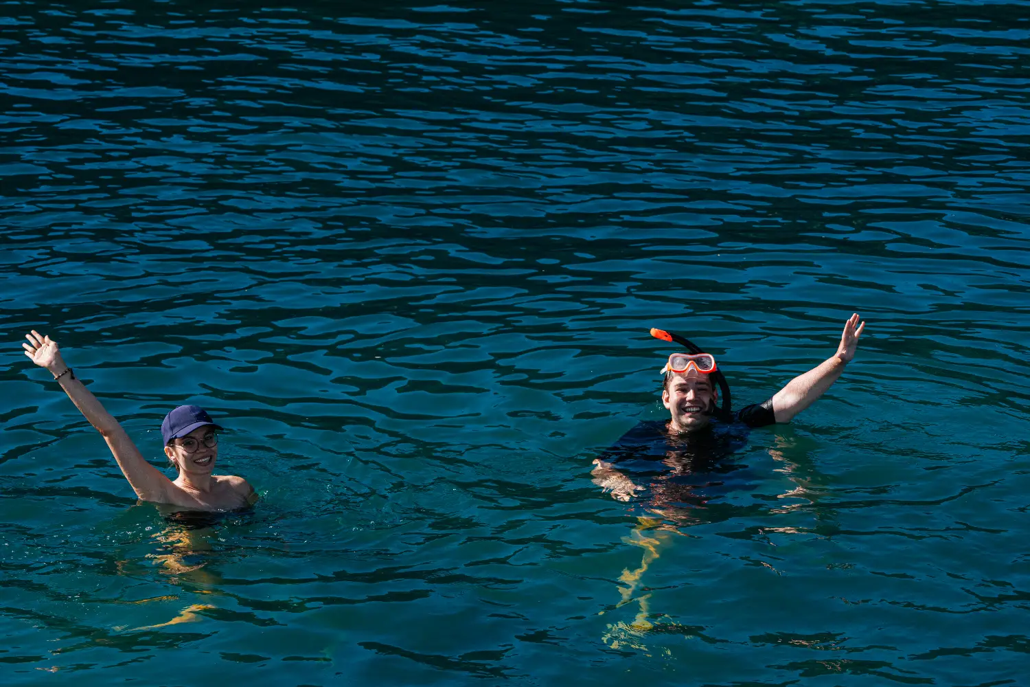 This Private sailing cruise starts from Vlychada at 2:30PM, The Fisherman refuge center of Santorini, The closest we have to a marina! We’ll sail south towards the red beach, make a stop for swimming and pictures and we’ll continue to sail past the white beach. Then we’ll sail towards Mesa Pigadia of Akrotiri and eventually go past the Light House of Akrotiri and into the caldera with the magnificent views and the Volcano in a straight direction to our bow! At The Volcano we’ll make a stop by the hot springs for swimming while our crew members will prepare a delicious lunch for you when you come back! After the hotsprings we’ll visit the beautiful island of Thirasia and on the way back we’ll sail while watching from afar the stunning Ammoudi of Oia and the Old port of Fira! Eventually we’ll return to Vlychada! Sunset will be seen from Akrotiri, Santorini’s very edge!